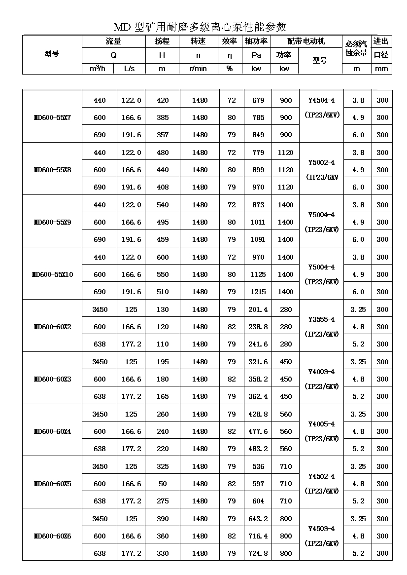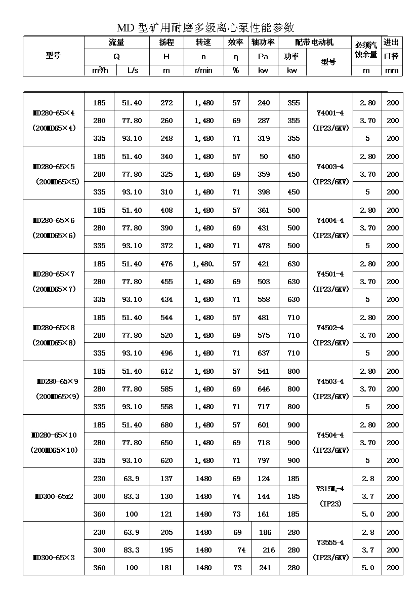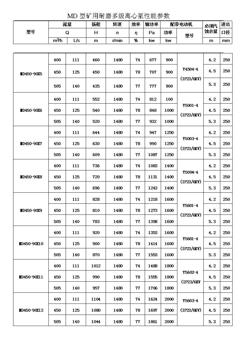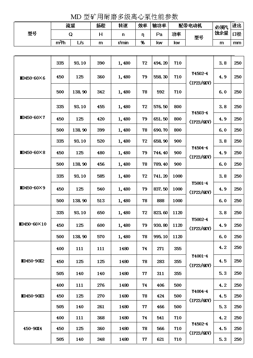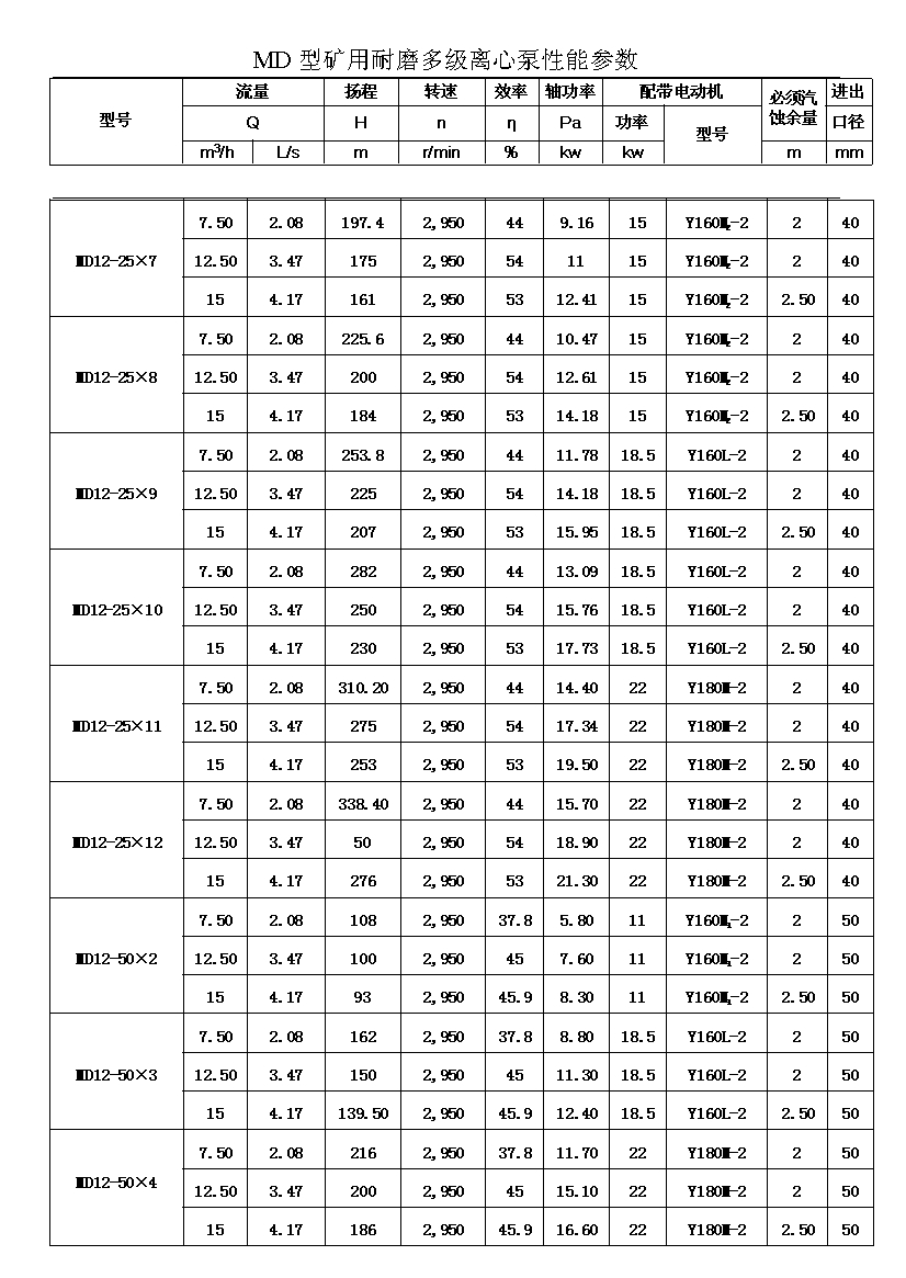 MD型耐磨多級離心泵,是我公司在D型單吸多級清水離心泵的基礎上,改造設計的一種耐磨多級離心泵。MD型耐磨多級離心泵,高效節能,耐磨可靠,壽命長, 特別適用于礦山排水,抽送固體顆粒含量不大于1.5%(顆粒直徑小于0.5毫米)的礦井水及其他類似液體,液體溫度不高于80度。