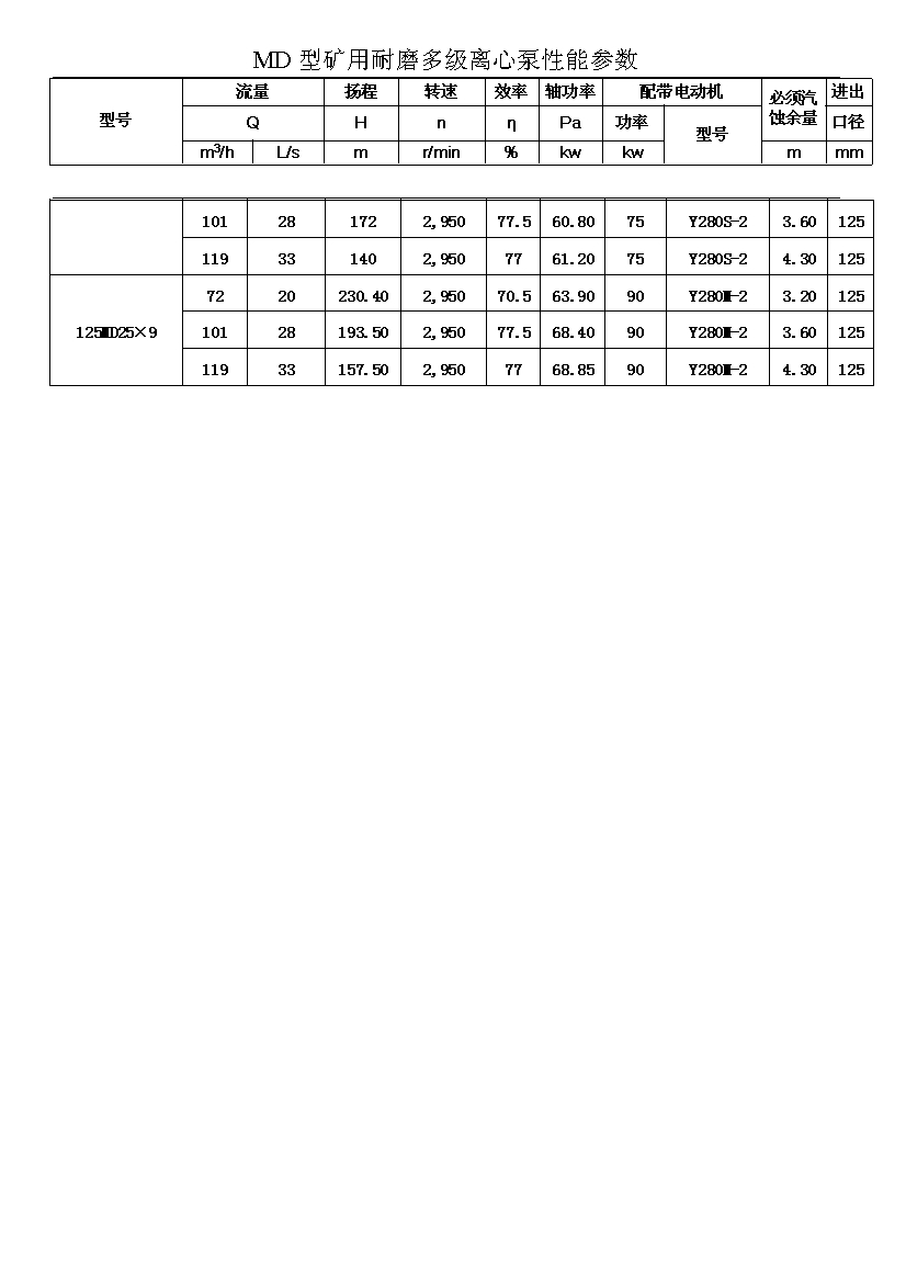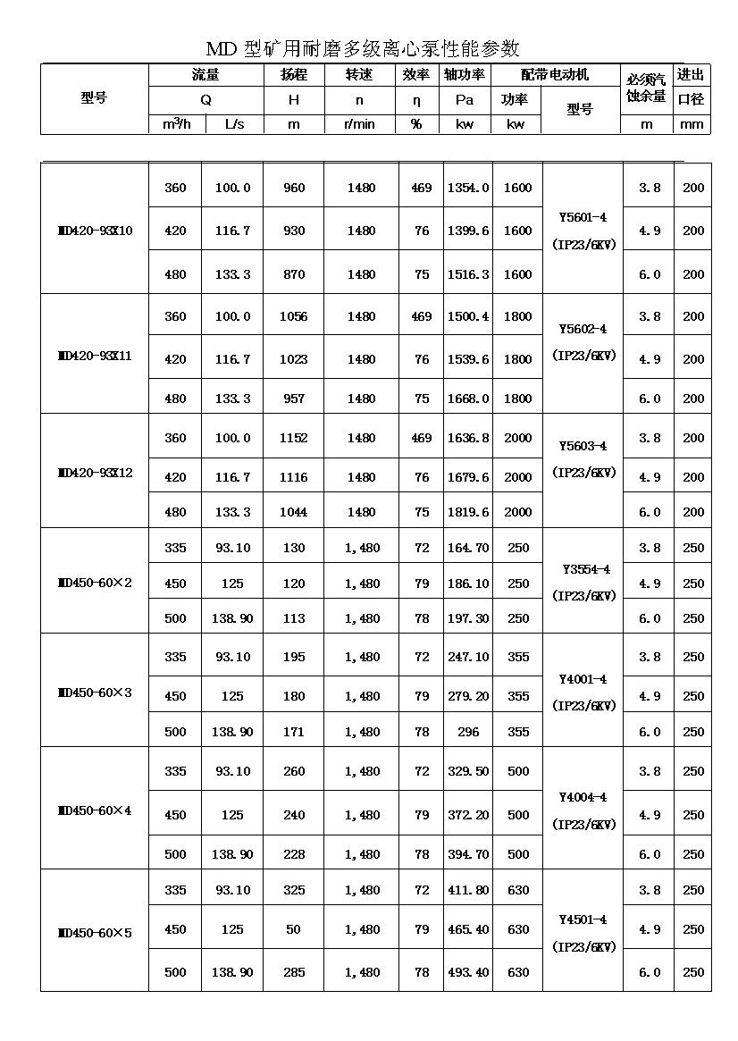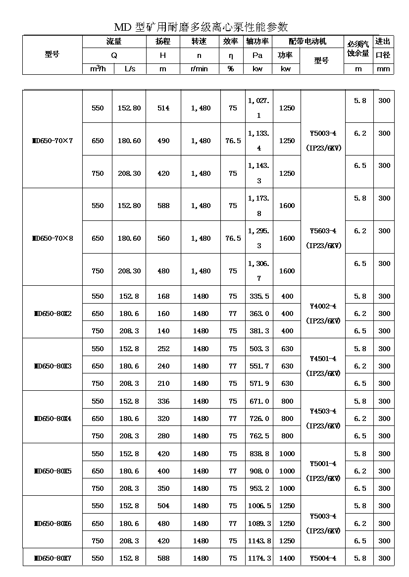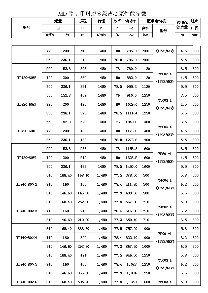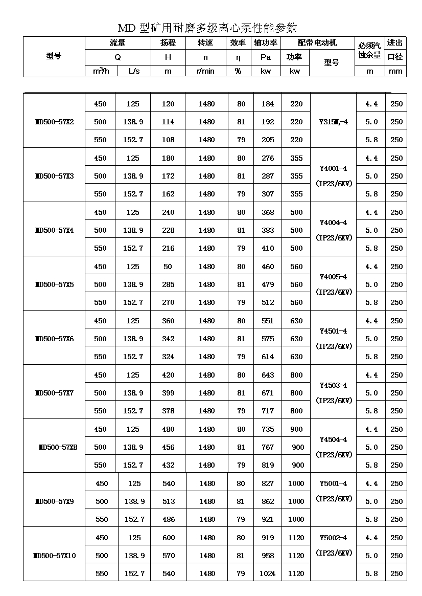 MD型耐磨多級離心泵,是我公司在D型單吸多級清水離心泵的基礎上,改造設計的一種耐磨多級離心泵。MD型耐磨多級離心泵,高效節能,耐磨可靠,壽命長, 特別適用于礦山排水,抽送固體顆粒含量不大于1.5%(顆粒直徑小于0.5毫米)的礦井水及其他類似液體,液體溫度不高于80度。