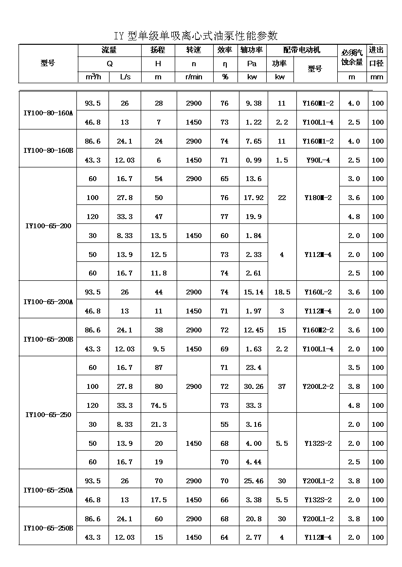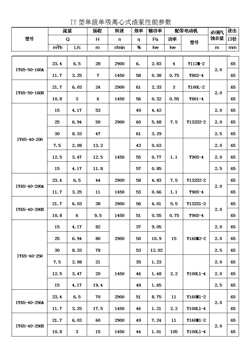 IY系列單級單吸輸油離心泵,適用于輸送不含固體顆粒的石油產(chǎn)品,被輸送介質(zhì)的溫度在-20℃~+150℃之間,泵的***高工作壓力布大于1.6MPa,吸入口壓力不大于0.8MPa,主要用于油田、煉廠、石油化學(xué)工業(yè)。其性能參數(shù)為:流量Q:6.3~400m3;揚程H:5~125。