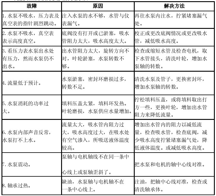 (8)當長期停止使用水泵時,水泵應拆卸開,再將另件上的水擦干,并在滑動面處涂上防銹油,妥善保存。